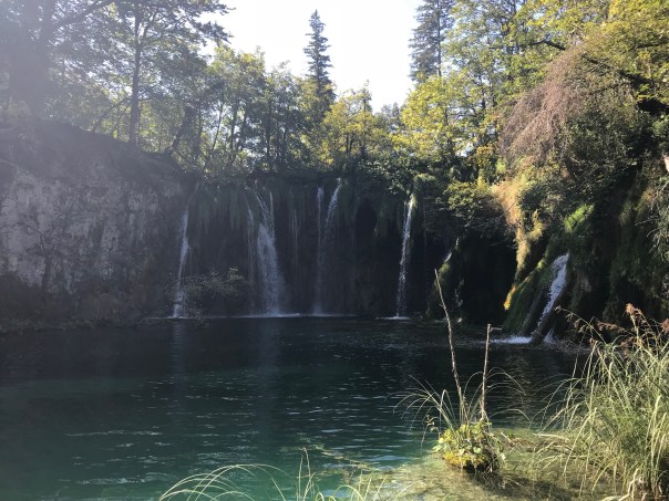 We arrive midday in Plitvike Lakes, a famous national parc and check in our villa. We drive back to have lunch towards a small town but come across the Baca Caves and decide that we should explore them. We have lunch at a nearby local restaurant…vegetarian options are few and far between here but we make do…Chuck really likes the local beer 🙂