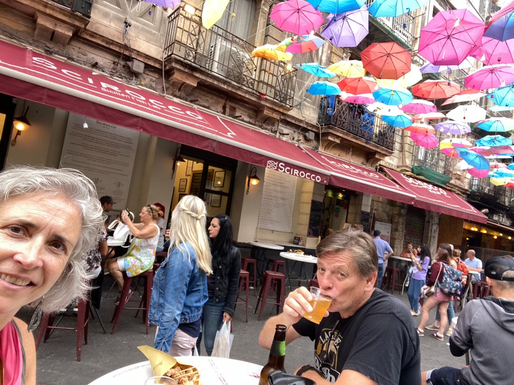 First stop is Sicily for Chuck and I. Since we have a long lay over in Naples, we decided to take a taxi into town for a taste of pizza where it all began! The famous antica Michele has a long line up so we make our way to El Présidente. Watching the locals scream at each other across the road is a show onto itself!! While the slice is good, the crust could be better cooked in my opinion. We will try again.