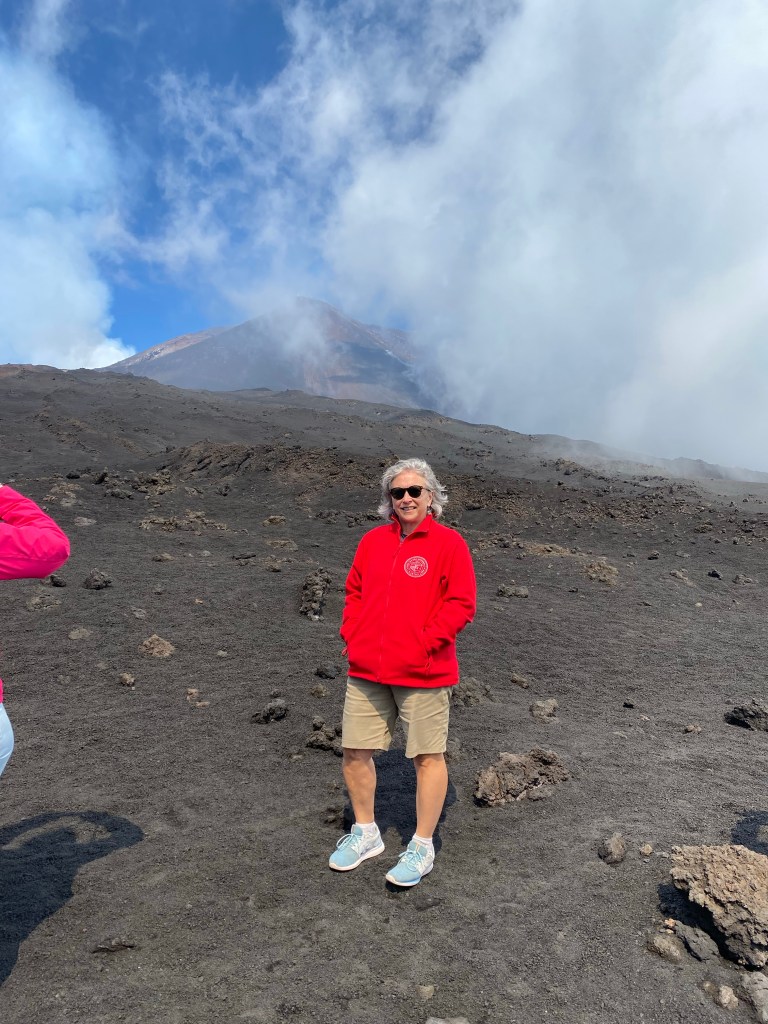 Our excellent driver Francesco (we purchased the tour on getyourguide), explains the various craters and the particularity of Mount Etna as we take the road to climb to 2500 feet. Lava stones and craters everywhere! He tells us that Catanian are not scared of mama Etna. It is a volcano that creates slow lava flow in contrast to Vesuvius which is explosive so citizens have time to evacuate. The lava flows in return becomes a very fertile ground which provides them excellent produces. They regularly watch the “show” is short eruptions.