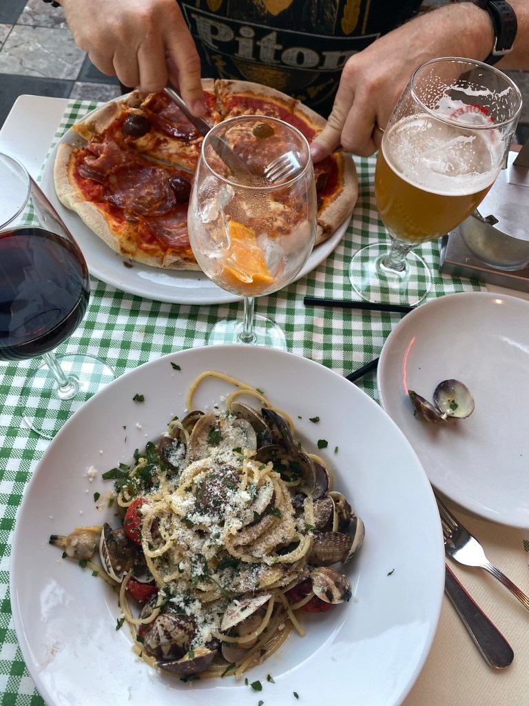 The pizza at the local trattoria wins the prize so far and the spaghetti with clams is excellent!