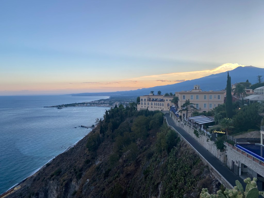 Taormina is very reminiscent of Santorini. Small pedestrian street high fashion stores, way too many people and amazing views of the sea. The Teatro Roman Greco is spectacular. Spectators in the stand would be able to watch the show with the beautiful view of the sea in the background. We are taking in the views from all directions! The best bucket list thing would be to come back to watch a show here! Our guide tells us he saw multiple acts here including Simple minds and Sting. Maybe we come back for the film festival!!