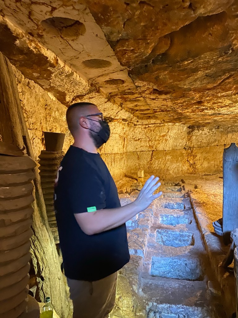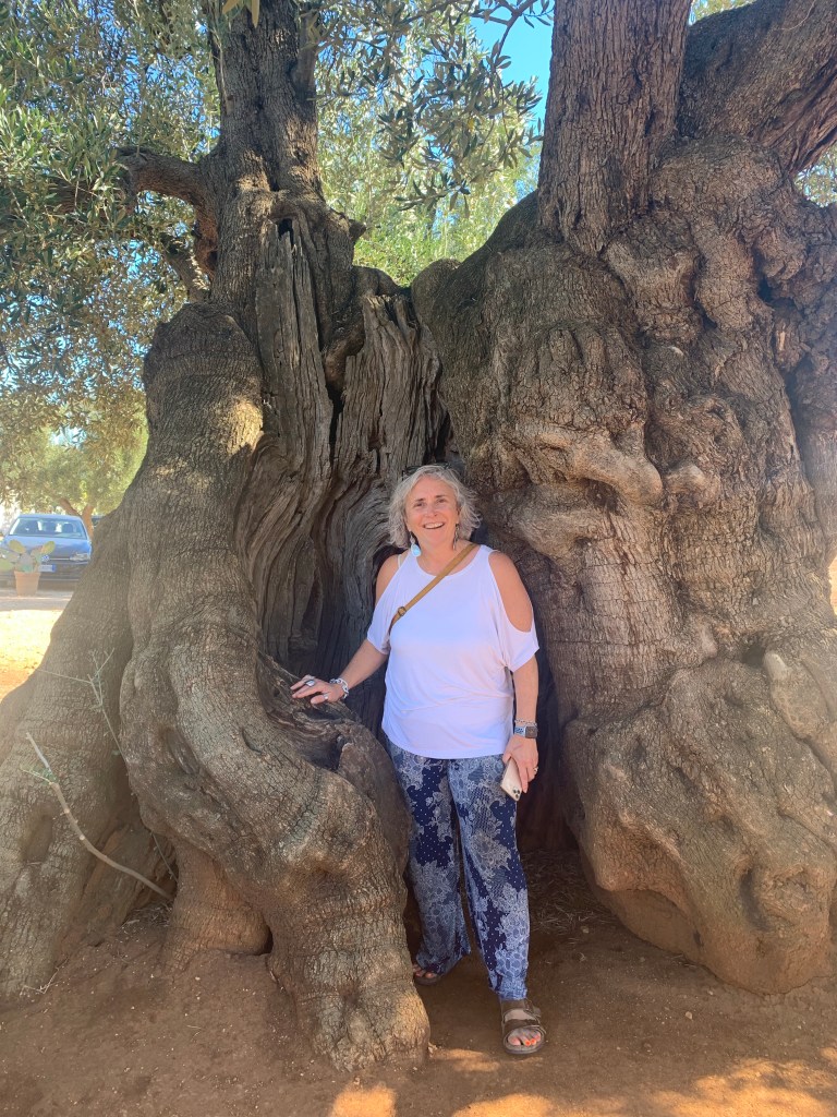 He also brings us to the grandfather tree….it is 3000 years old…it is crooked and needs support (from the stones on the photo) as they try to protect it but it continues to be a great producer of olives.