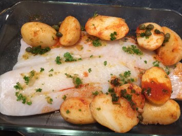 Bake until the fish is opaque in the centre and flakes well. This should take about 15-18 minutes depending on your oven.