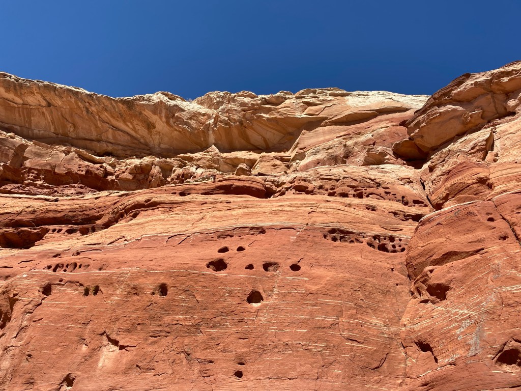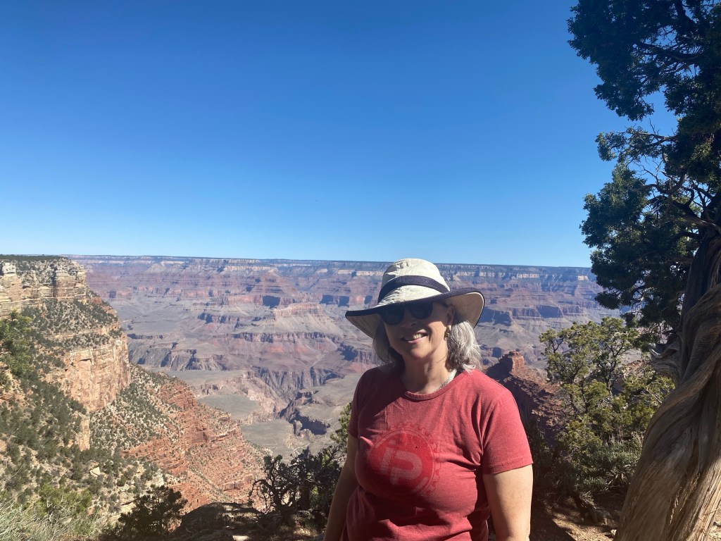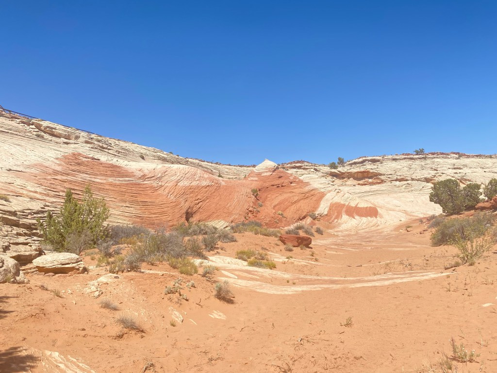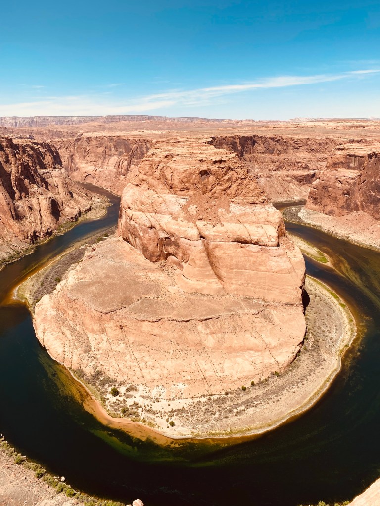 The Under the Canvas luxury tent campground is exactly as we would have expected! The interior of the tent is spacious and well appointed and our view to the Grand Staircase from our porch is fabulous. The dining hall with its outdoor patio is also lovely. We go for a short hike on the property to their small slot canyon and enjoy a very informative talk from geologist Gary in the evening. He shares so much information about the “making” of the Grand Canyon but also shares about the water crisis they are currently experiencing. From an average of 6 inches of water a year, they were down to under 1 inch last year. Their local lake Powell created by the dam is down to 27% of its historique high, threatening their very water supply and the whole Colorado river water level. Astonishing that not much is being done to address this overconsumption of water.