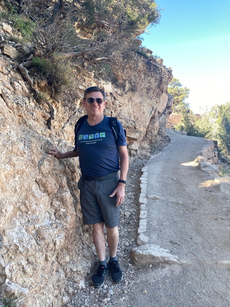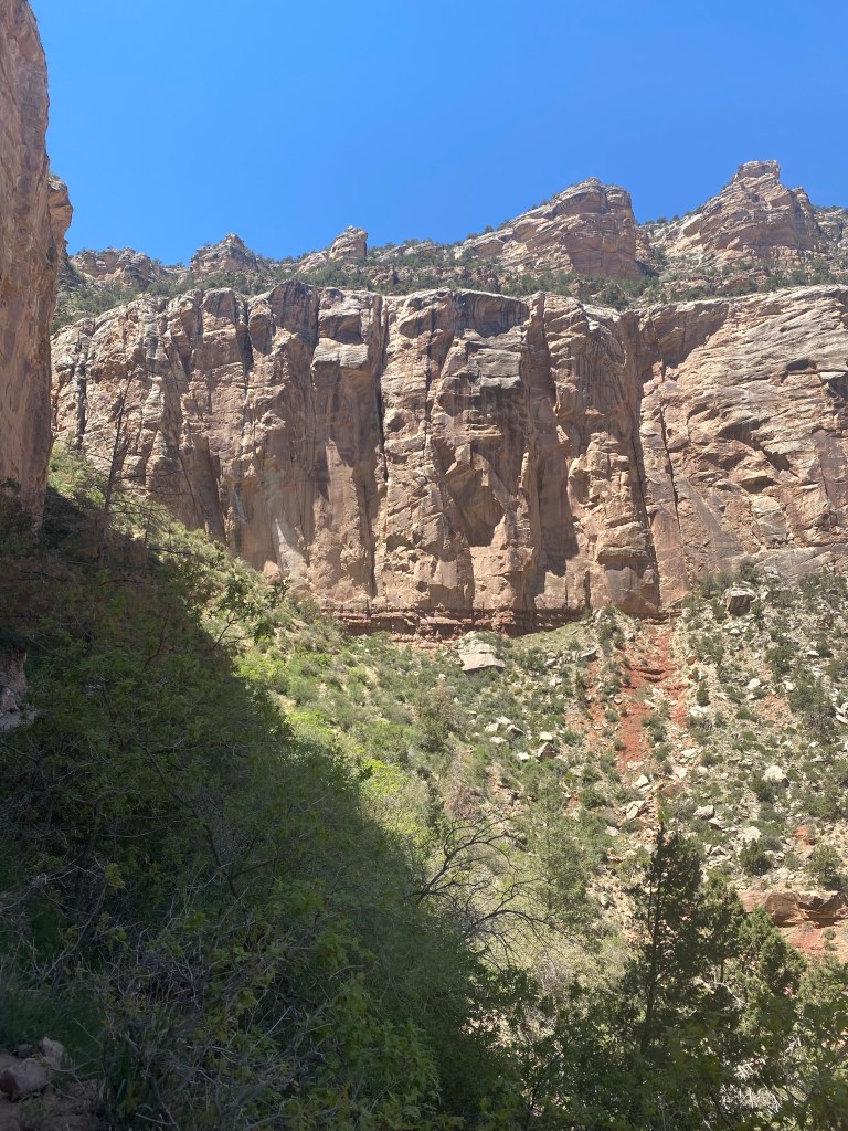 On day 2, we make our way very early to the South Kaibab trailhead full of energy. Very quickly as we descend though, we realize that the trail is narrow and the height will make this a nightmare for Chuck.