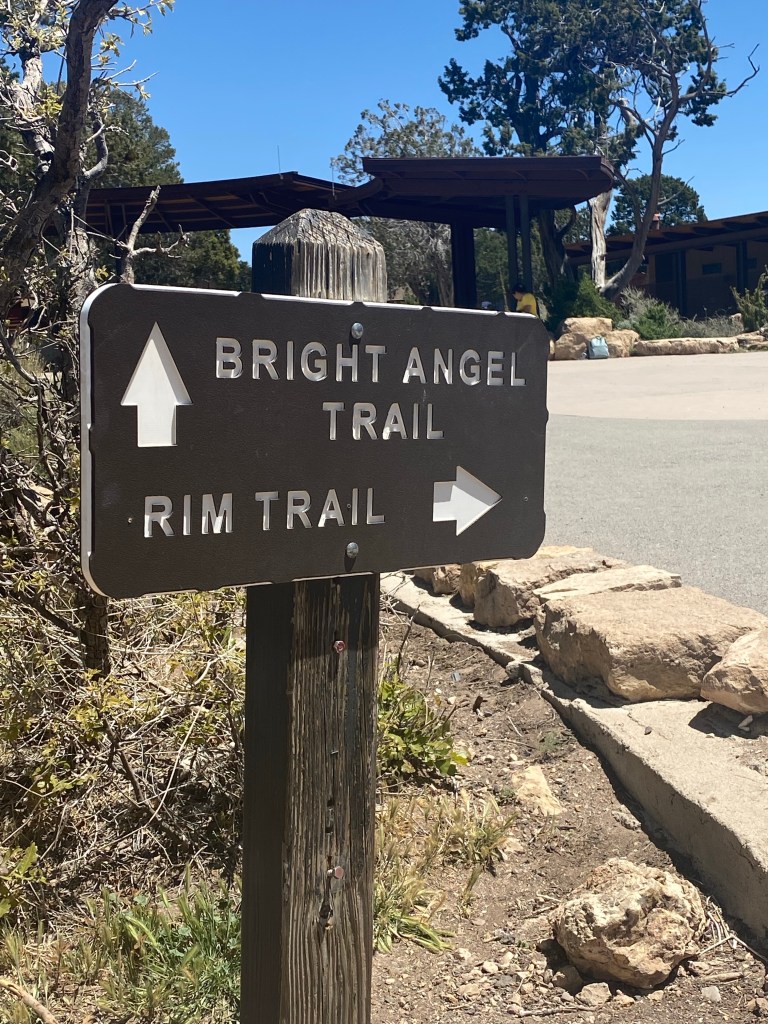 We go back up and decide to hike a bit more of the rim trail on our way to Bright Angel Trail. Without realizing, we are piling up the steps and the kilometres! Amazing how everything is well maintained….no garbage on the ground and anything in back condition. The paved Rim trail is incredibly scenic.