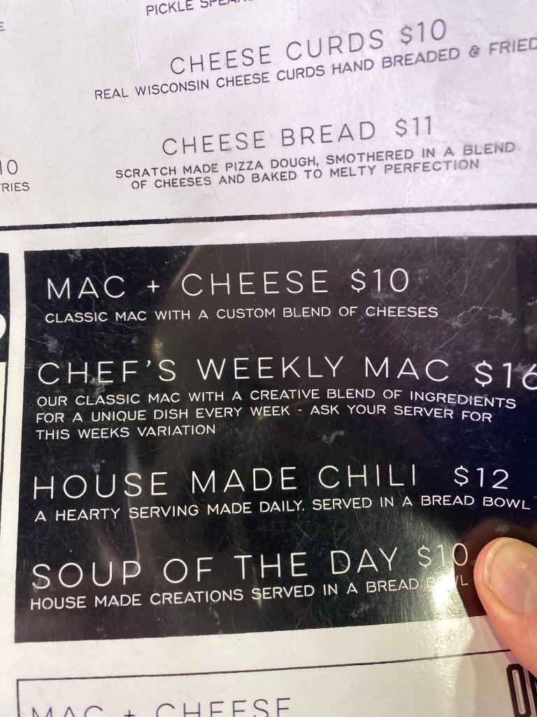Off for lunch to a super cute roadhouse called Grand Canyon brewery in Page. An absolute must! The decor and atmosphere are really neat and I can not resist sending mathew pictures of some of the menu items. Cheese curds (our favorite) are fried and breaded 😳….and some variation of Mac and cheese.
