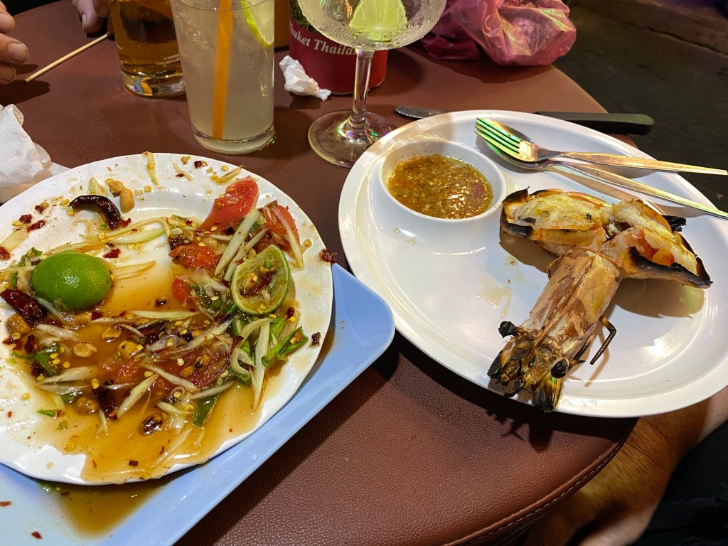 Heather orders interesting looking prawns and the first of MANY papaya salad!