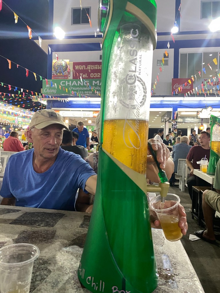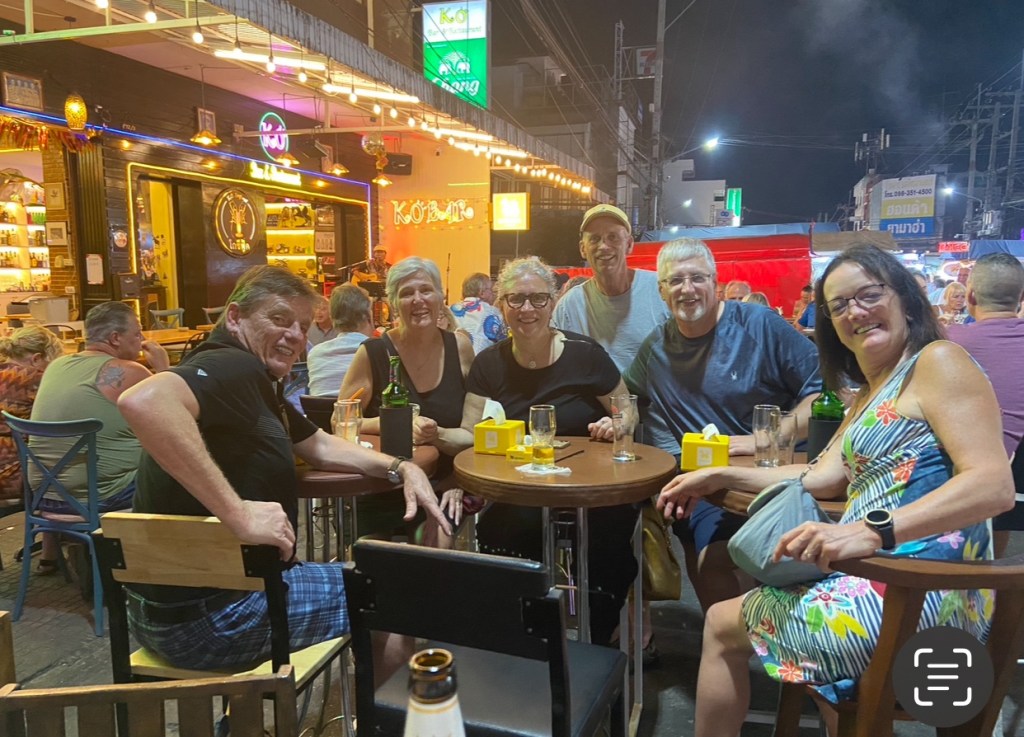 In the evening we walk from the hotel towards the bar district with our new friend Trent and Chris. We come across a bar/restaurant where a pool tournament is underway. Lots of Scandinavian men and a few Thai women.