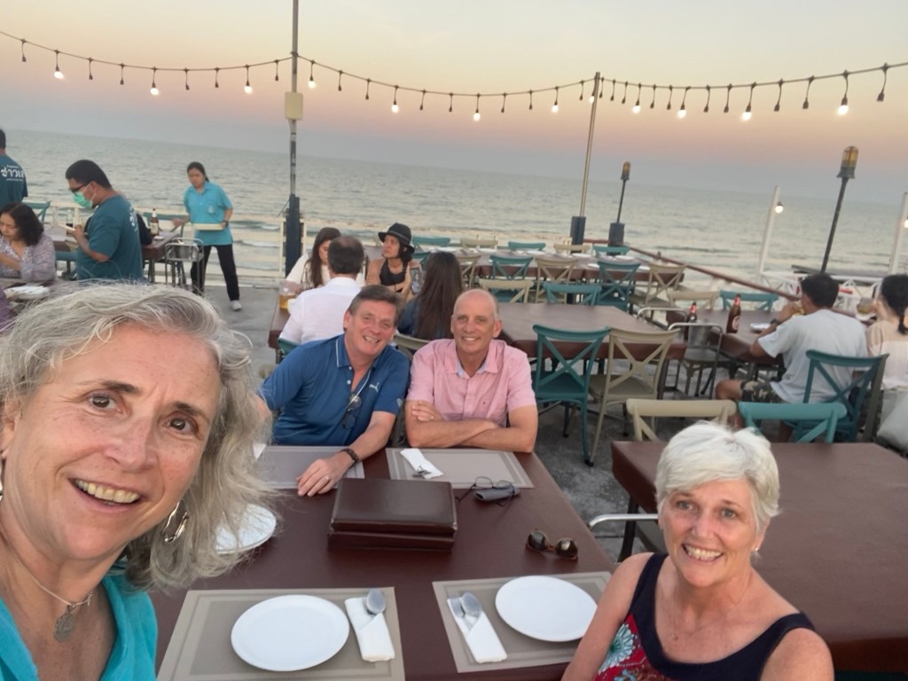 After dinner, we join a small group at the Anantara beach resort on the beach for a night cap.