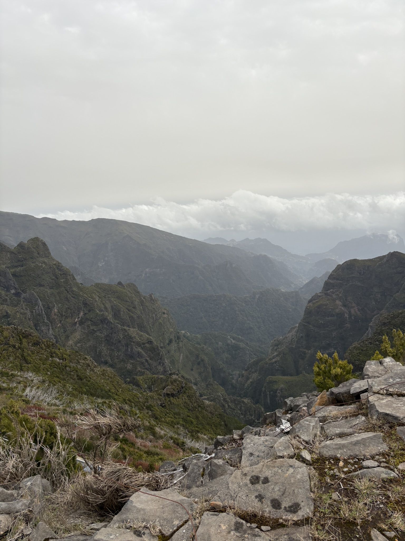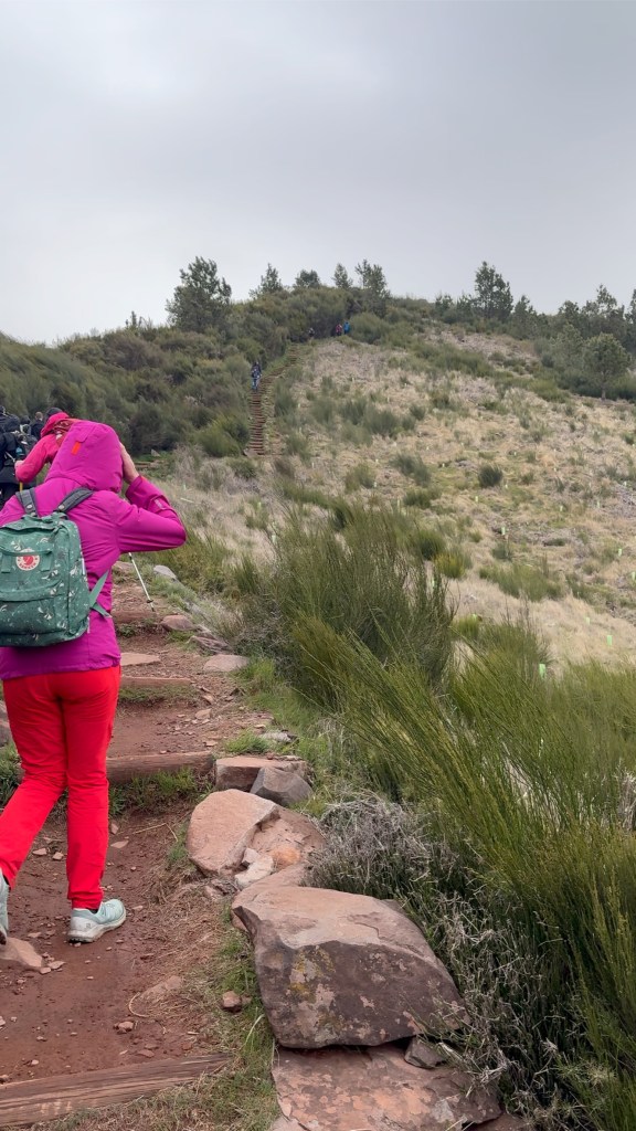We have booked a group hike to Pico Areiro in the hope to hipe the stirway to heavens. We begin with a long hike to the top. We go by beautiful views.