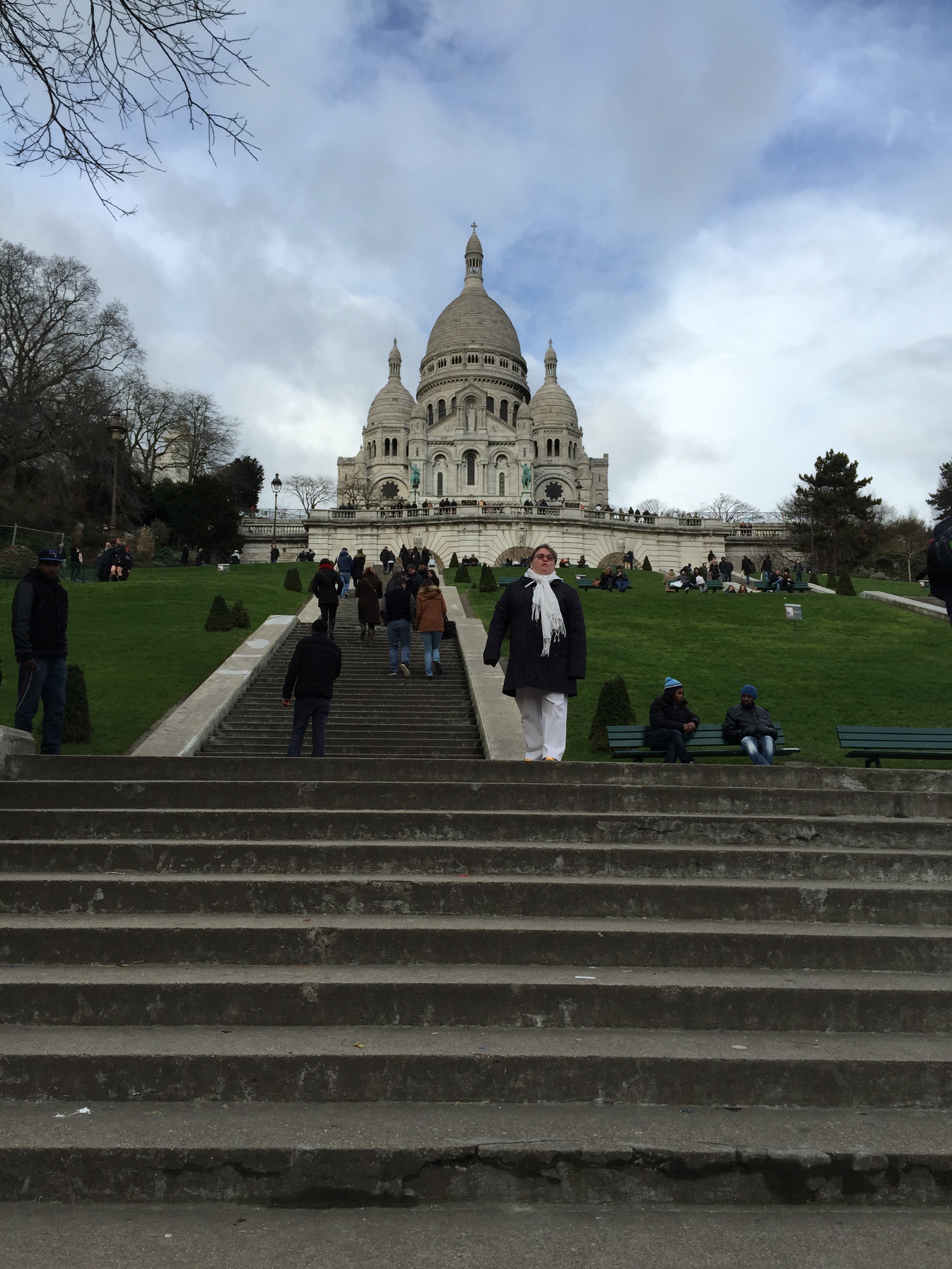 After a great onion soup and fries, we decide to forgo the funicular and walk up the stairs. Great view and definitely worth it!! We make our way back, now in the rain and cold on our way to D’Orsay. Not as much fun as waking in the sun :(.