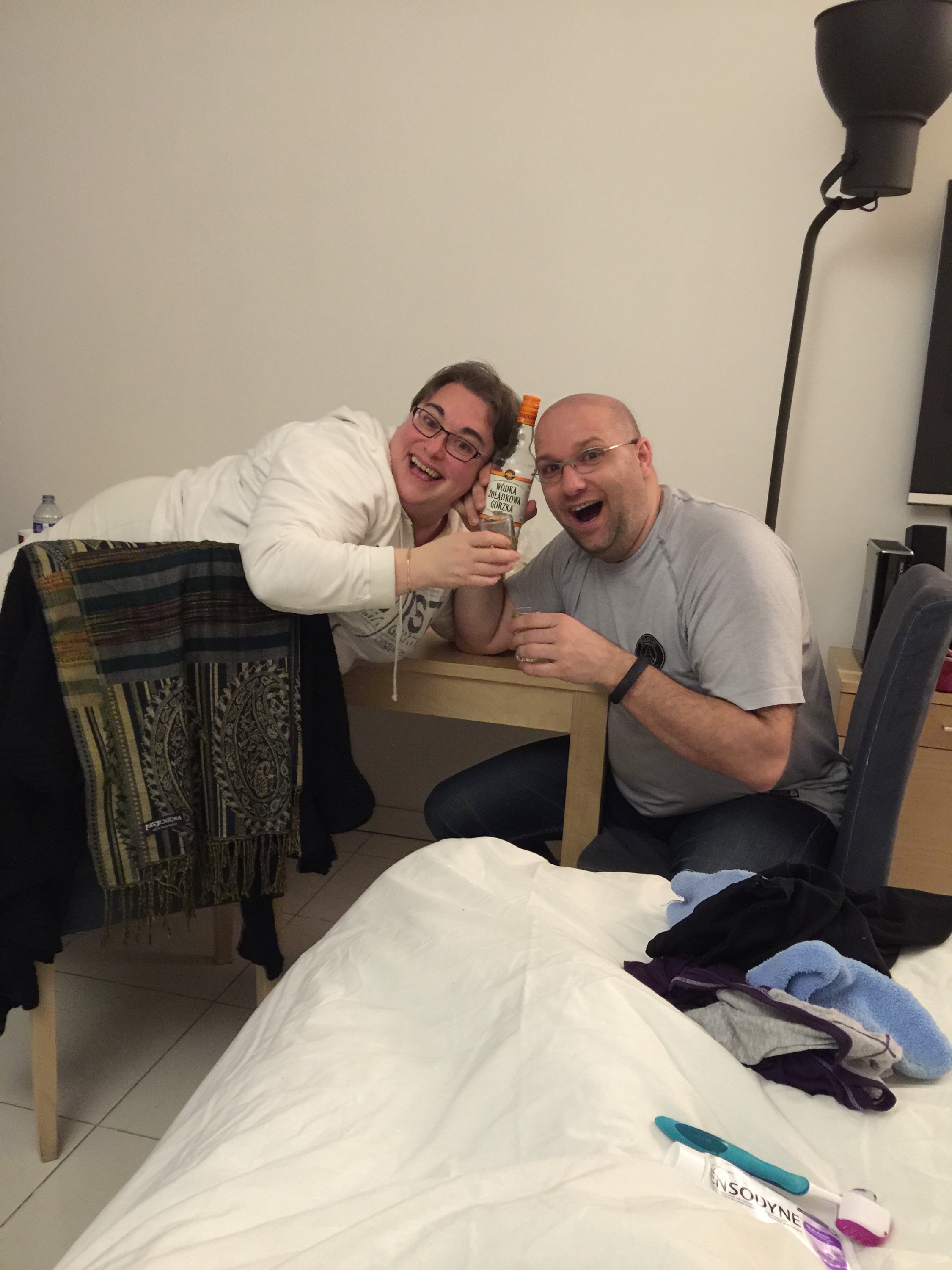 Back to Daniel for an awesome cheese fondue, salami and wonderful champaign, red wine, and polish vodka. Lorraine beat her record of staying awake more than 34 hours ! An awesome first day!!