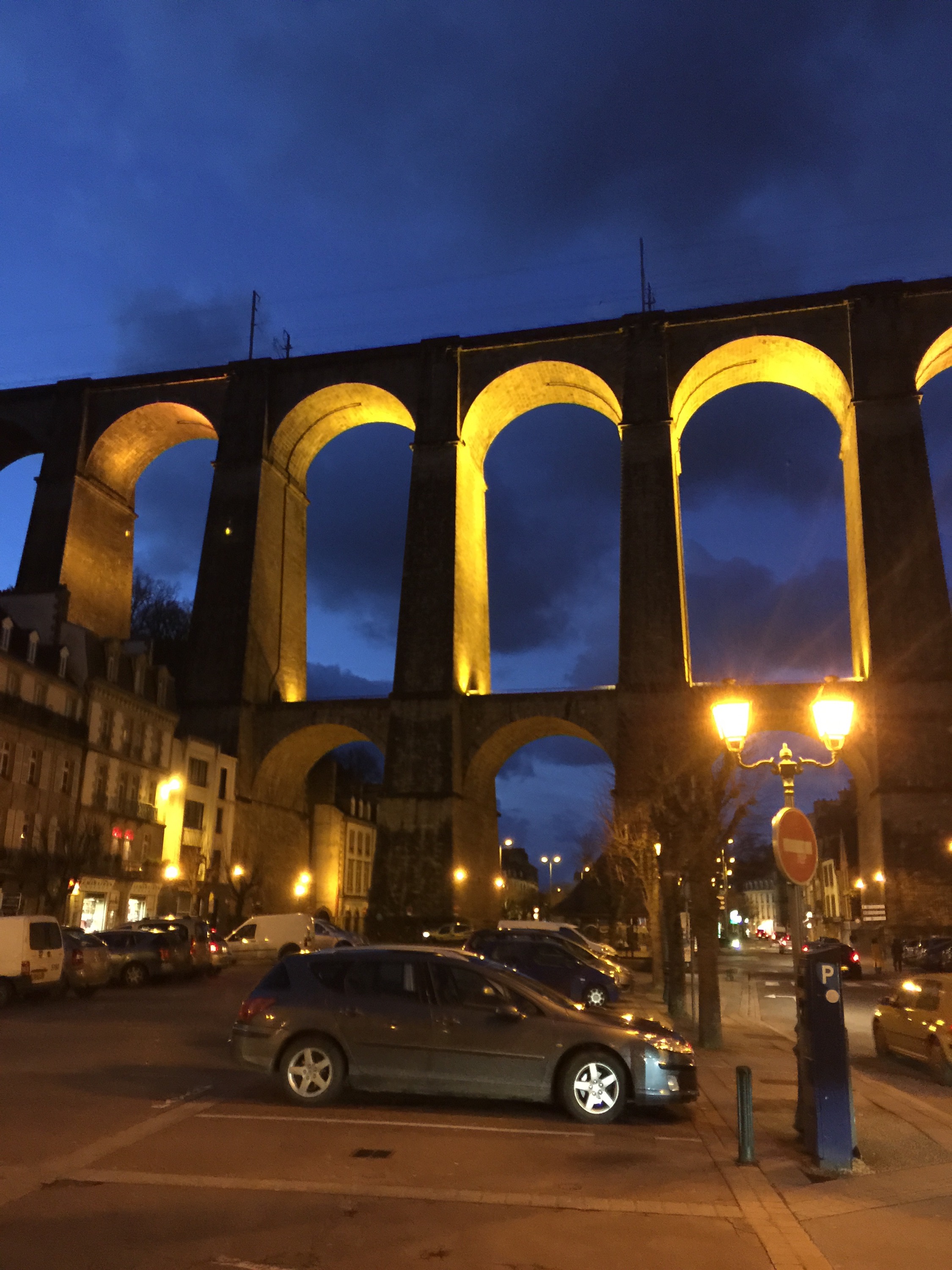 And get on our way to find a bar where the game is on. We make a wrong turn and stumble across the viaduc at night. What a sight!!
