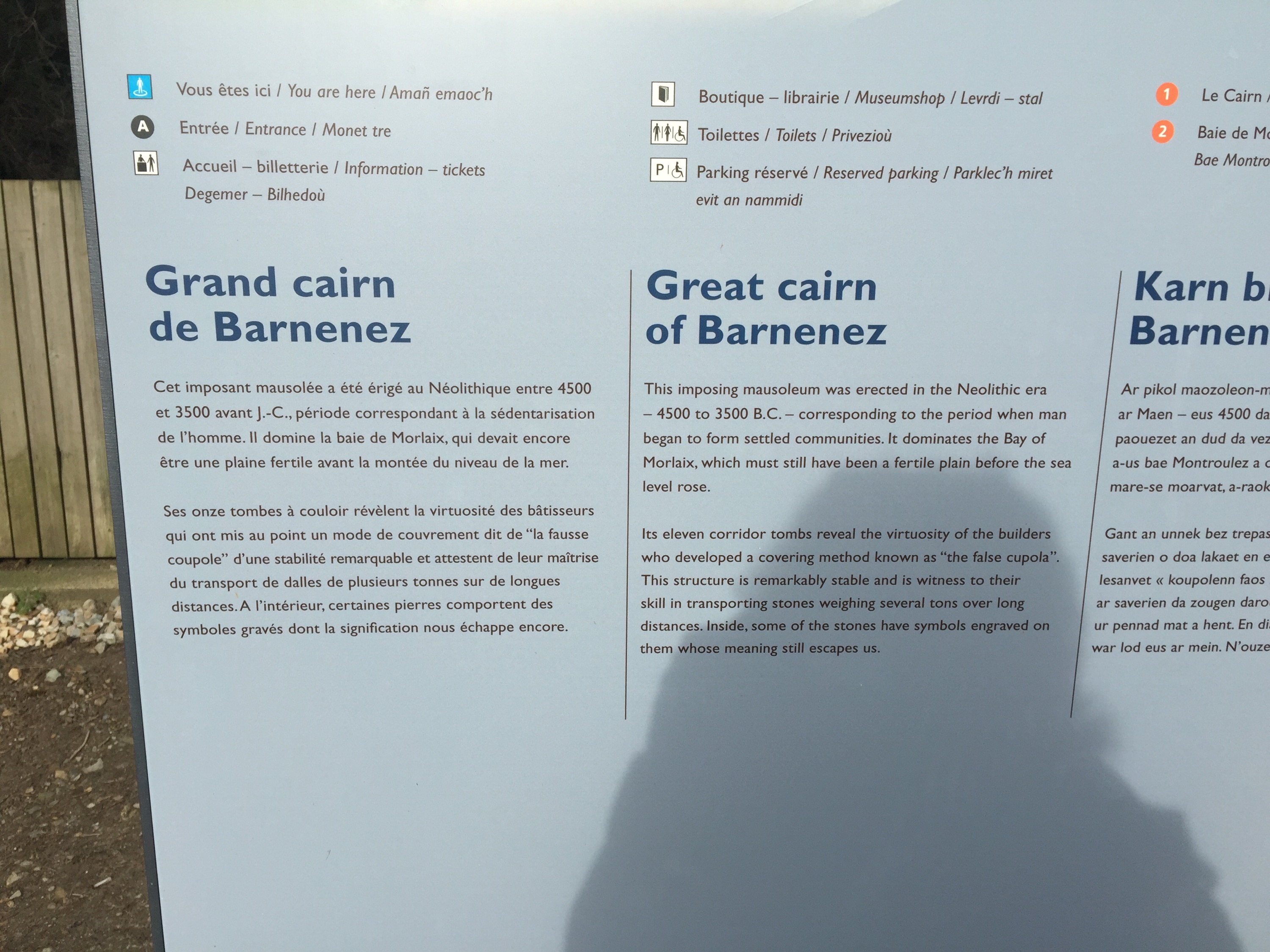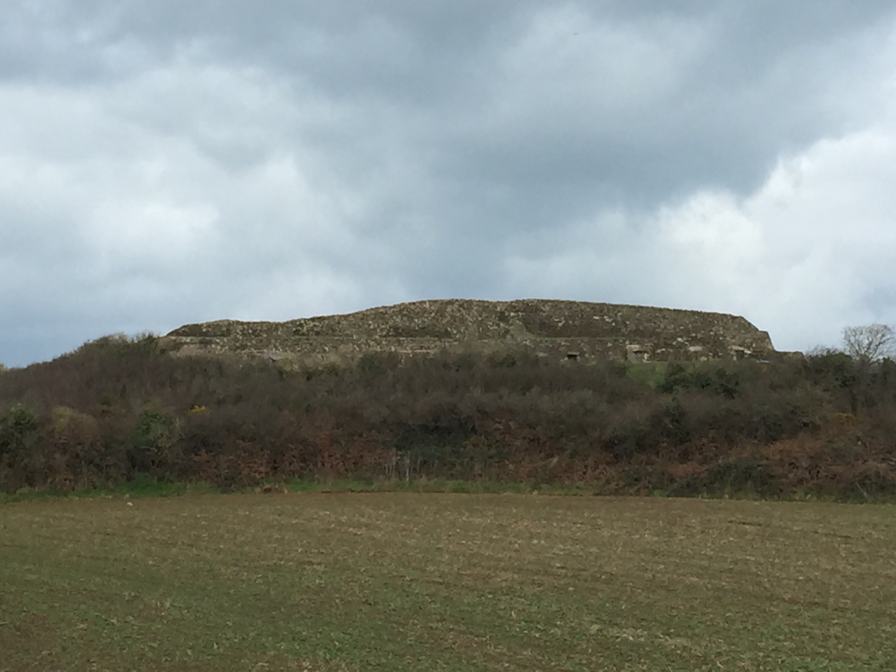We then drive back to Morlaix to cross the Morlaix river and go on the east side on our way to the Cairn Barnenez. Surprise surprise we arrive at 12:05 and the visit ends at 12:30. Guess what?? They won’t let us in because it takes 30 minutes to visit!! Those darn bureaucrats!! We drive around on a dirt road to take a picture still! This is a mausoleum dating back to 5000 years BC!! Blows your mind! Was discovered by accident about 60 years ago.