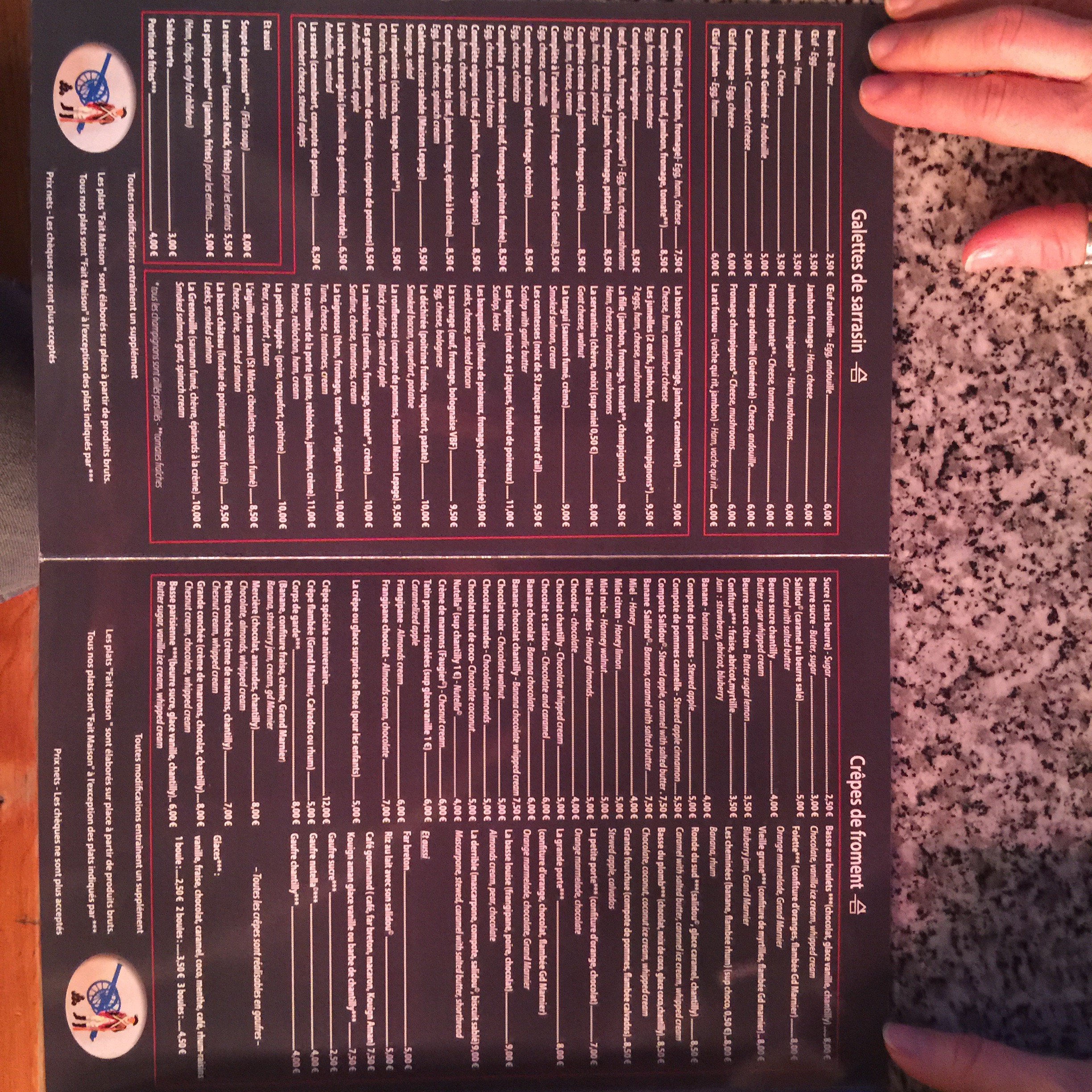 Towards the end of our walk we come across a creperie on the wall overlooking the “Manche”!! Beautiful view and extensive crèpes and “galette de sarazin” menu!!