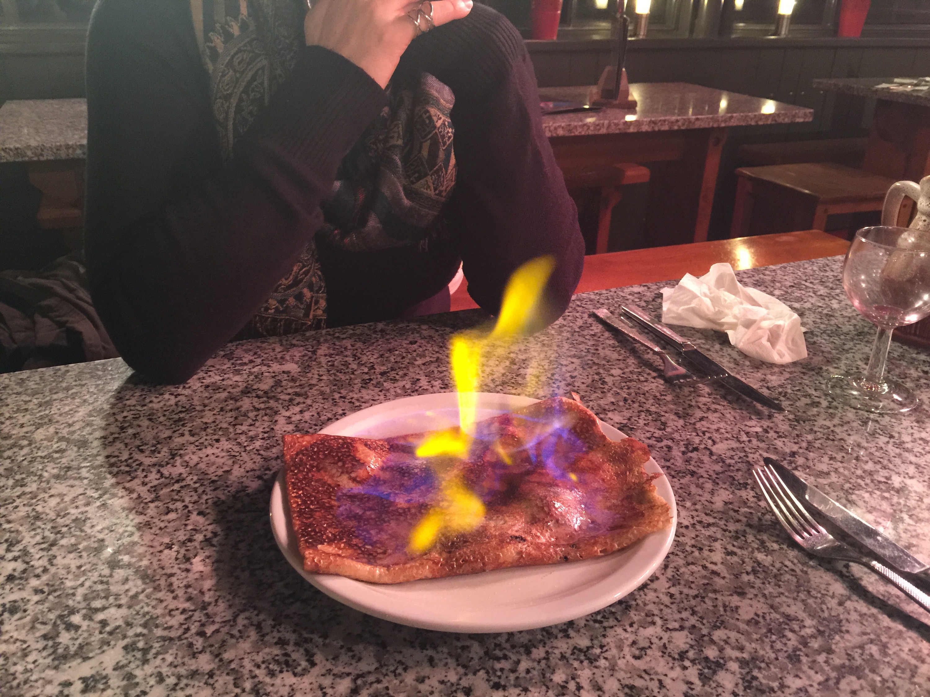 We both order excellent choices as well as a flamed rhum banana chocolate crèpe for dessert. yum!!