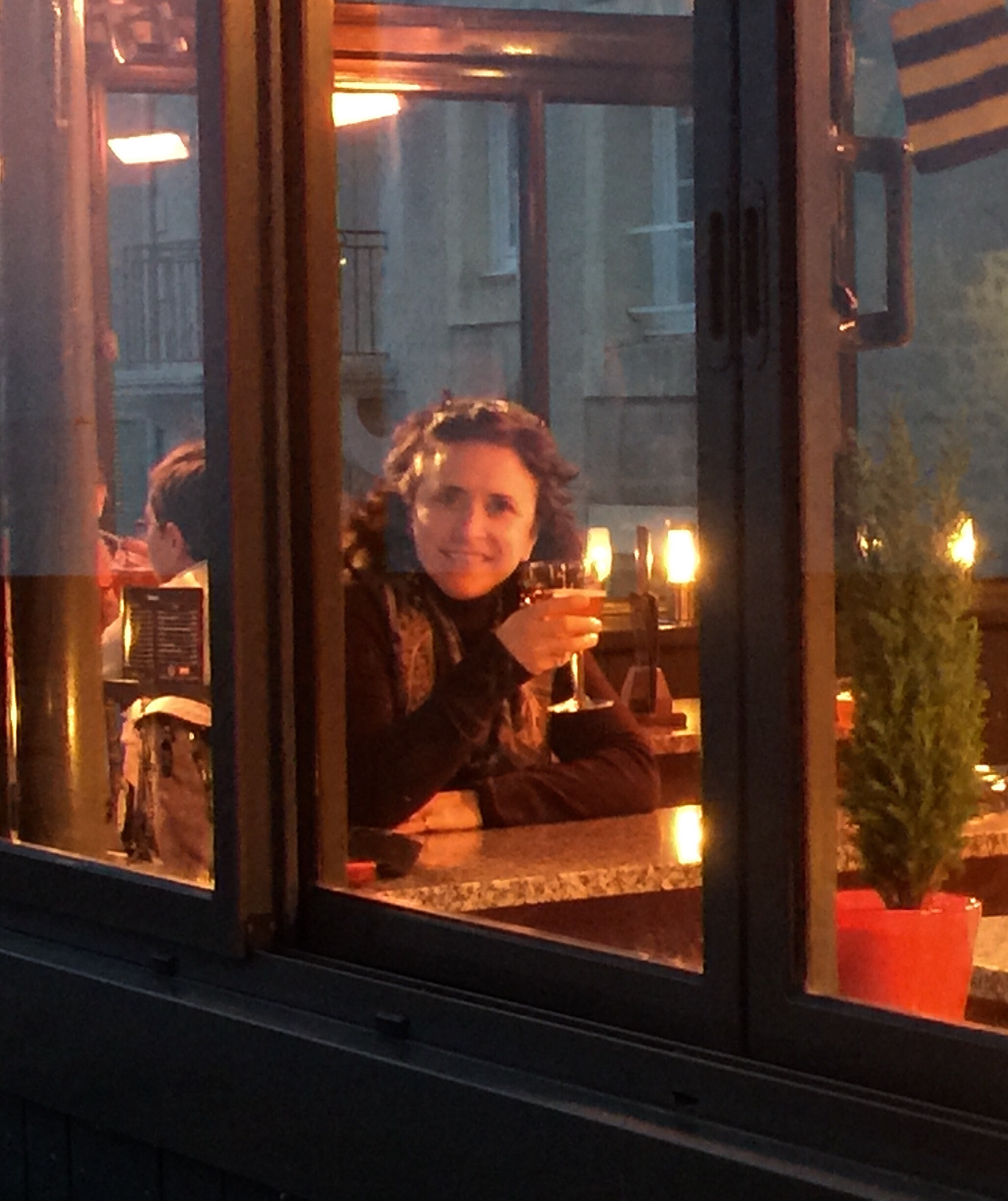 We get to Abbesse subway and we laugh at the bunch of people waiting for the elevator and off we go up the stairs. One flight of stairs going round and round, 2 rounds of stairs going round and round, and more and more and more. What did we get ourselves to!!!! We finally emerge from the depth of the earth and start waking towards Montmartre. We find a cafe facing Sacre-Coeur. How majestic. Beautiful!!! And guess what, we got a friendly French waiter!! He asks if I want a large beer. I had no idea what I got into!!! Large is large!!