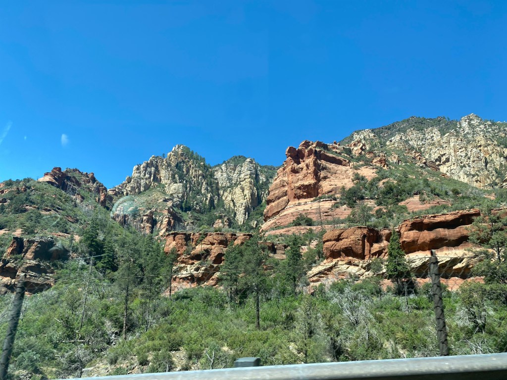 As we approach Sedona, a completely new landscape presents itself to us. Beautiful forest with large conifers, valleys and large mountains and hiking trails after hiking trails. I had no idea!