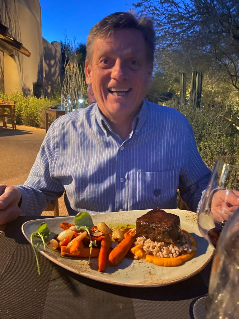 We leave shortly after the massage, on our way to Scottsdale. We are staying at Boulders Resort in a beautiful large casita. We make our way to the driving range to hit a few balls in preparation for my first golf round of the year. We have a lovely dinner at Paulo Verde at the resort with an excellent Barolo. Again the weather is perfect and we enjoy a beautiful evening on the patio. Onwards for 30 more years!