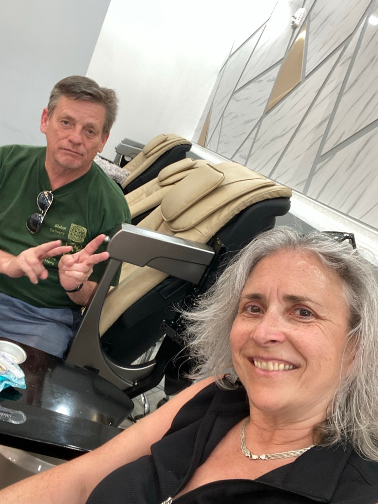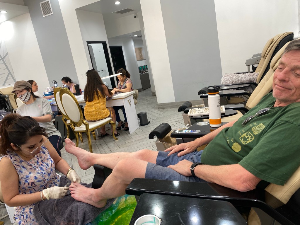 The next day, we have a flight in the evening so we enjoy the pool and go for a brisk walk in the morning. We check out and drive to old downtown in Scottsdale and walk around to see the town. We decide to stop at a nail salon to each have a pedicure. It is chuck’s first one and he now wants to schedule a monthly pedicure!