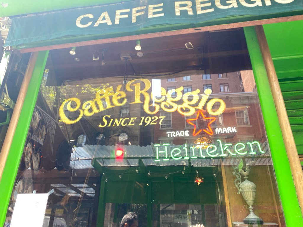 Our first activities is a guided tour of Greenwich with a focus on Italian food and history. As soon as the Tamos arrive, we are off on an Uber to the meeting point, hoping for lots of good food. We meet in a church, where our guide Mike explains the interwoven history of religion for new immigrants arriving to New York. We then begin our walk though the neighbour hood. Mike brings us to businesses owned by the same families for multiple generations and who have survived the pandemic. A fantastic coffee roasting place with an amazing selection of coffee as well as tea and spices! All served in bulk! Love it.