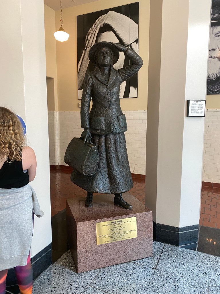 A Statue representing the very first immigrant that arrived at Ellis island.