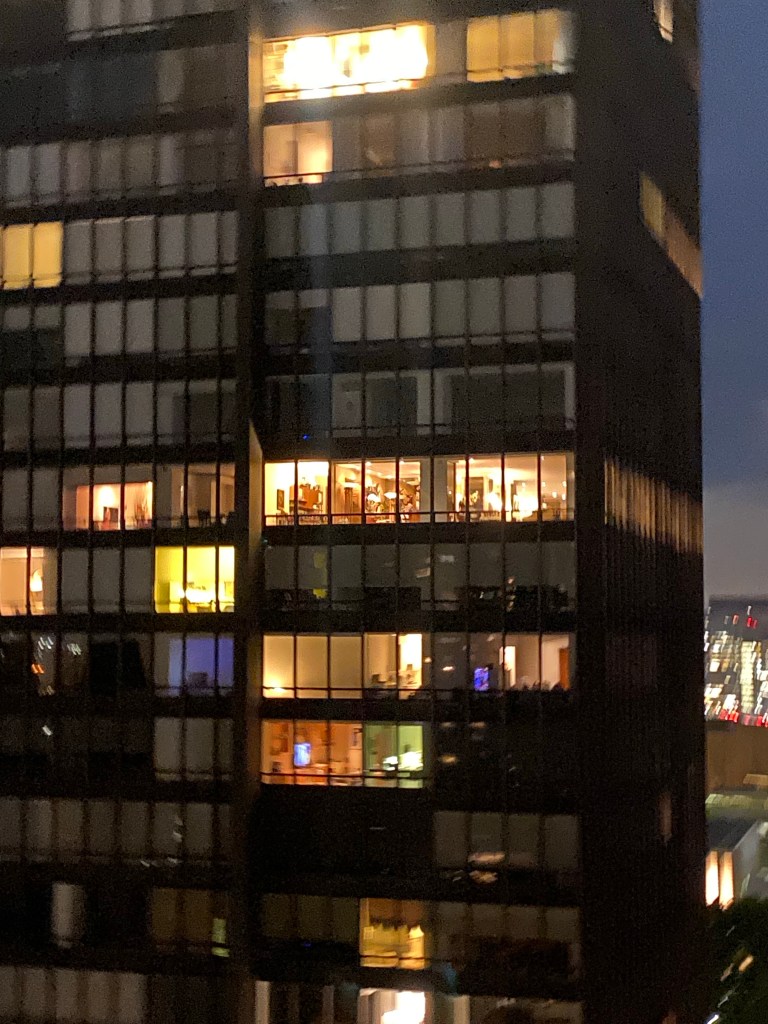 Back to our building, we go up to the 26th floor to Ophelia bar to enjoy Manhattan and an amazing view! The tables and chairs are right at the balustrade and it is almost scary to look down!