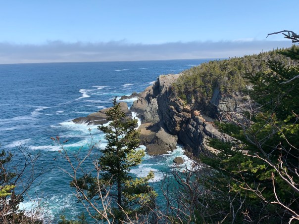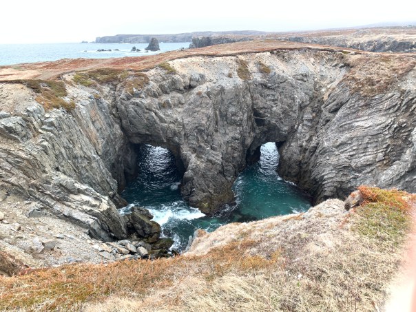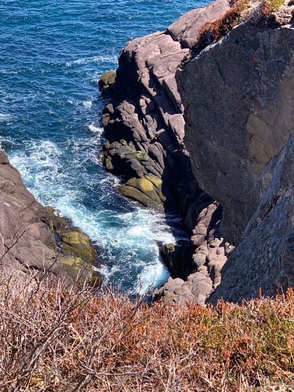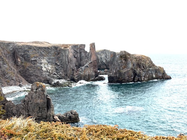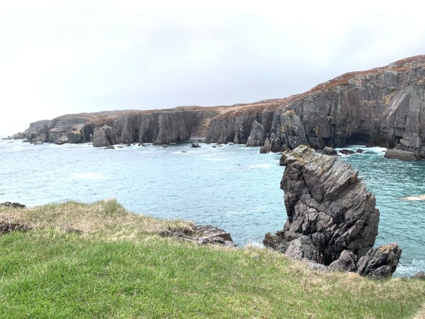 But the cherry on the cake on Sunday awaited us….we continued our trip to Spillar’s Cove and Cable John Cove. After a short walk from the end of the paved road, the vista opens up to an amazing sight!! Cliffs, iceberg, caves and more…I had to sit and take it in. Absolutely beautiful!!