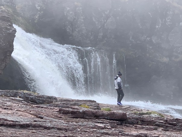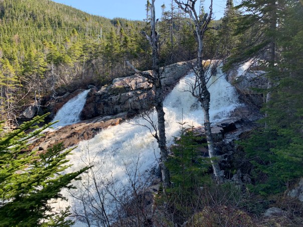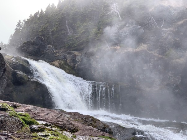 Well worth the drive/hike. A little bit down the road we stop at the end of the Pouch Cove trail in Flatrock to take a look at the flat rocks, the waterfall in Big River and the stunning waves crashing on those rocks. Loved it!!