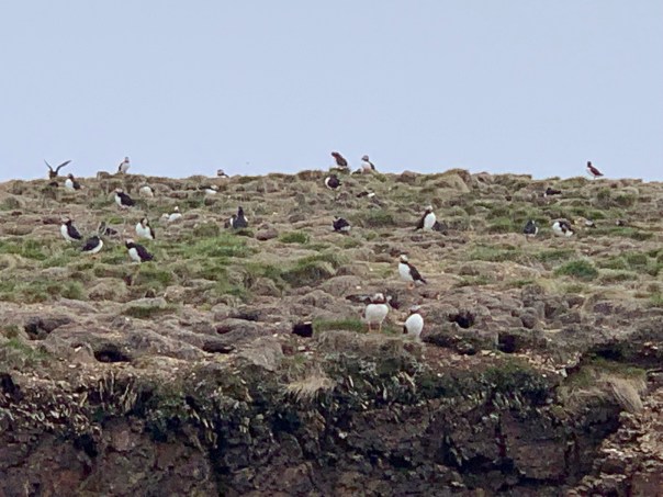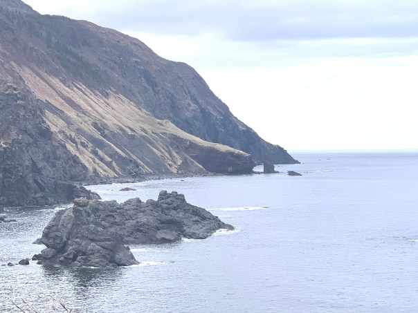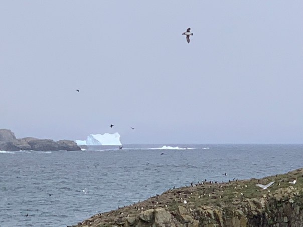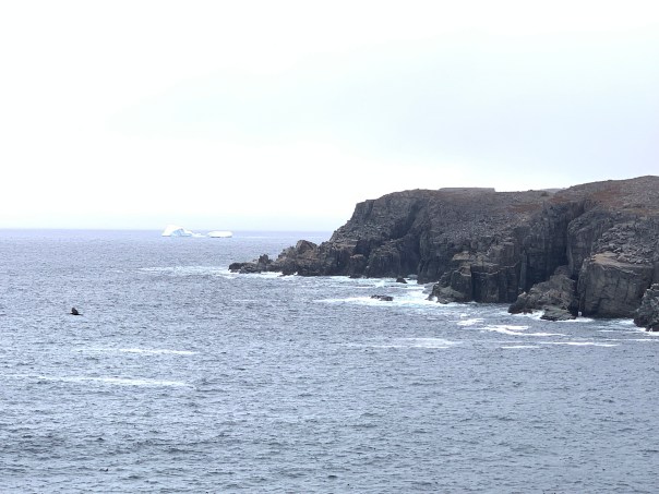 We are treated to beautiful cliffs and more icebergs. The scenery is reminiscing of the northern Scotland we visited a few years ago. Very windy coast!