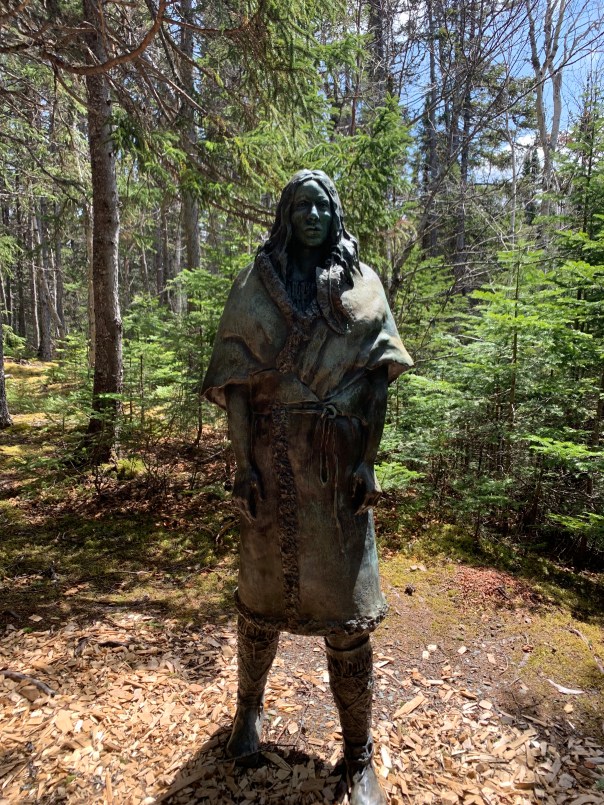We come upon the beautiful statue of Shanamdithit, the last known Beothuk, sculpted by local artist Gerald Squires. This was the impetus for the creation of this centre following excavation by archeologists in 1981. She was very detailed and striking.
