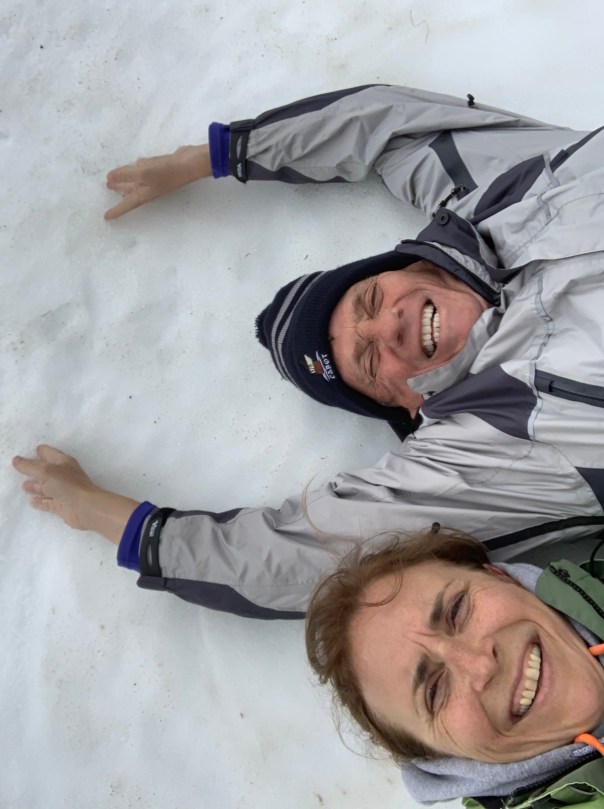We immediately set out to hike the Tablelands trail. The trail is fairly easy but on rocks small and big so watch your step. Halfway up, we come upon lots of snow and must find the less soft area so as to not sink in. The landscape is very unique, with its yellow rocks as far as the eyes can see. A good hike to stretch our legs and of course make snow angels 👼