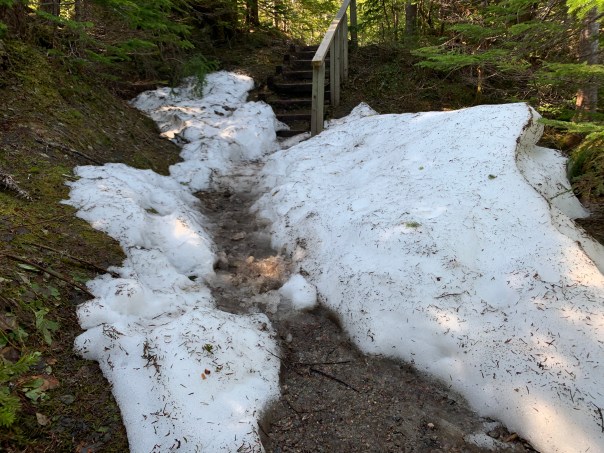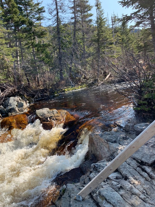 We stop on the way to the Southeast Brook falls short trail. A beautiful hike in the forest opens up to a cascading falls and we are treated to a rainbow overlooking the far section of the falls. Gorgeous nature again!!