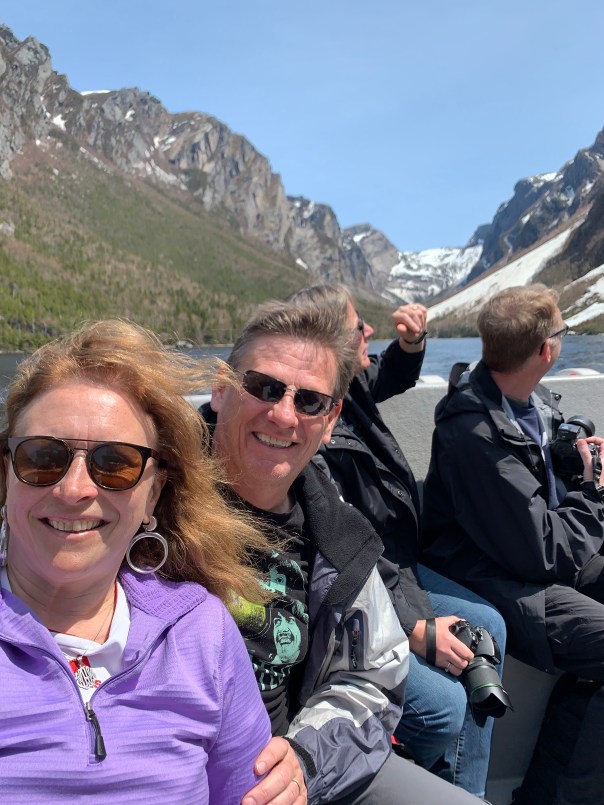 At the Western Brook Pond, we have a 3 km hike that takes us to the harbour. What fabulous vista at this famous landlocked fjord with very entertaining and informative guides on the boat. Chuck is sitting beside a lady from Vancouver who feels the need to talk constantly…imagine Chuck 😂