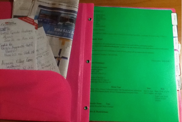 As you know I like to be organized so this is the binder with all the hotel reservations, plane tickets, notes on each island and ferries. So when Chuck booked the plane a few months and we said we would just wing it…..who were we kidding! This is me we are talking about 🙂 Here it is!