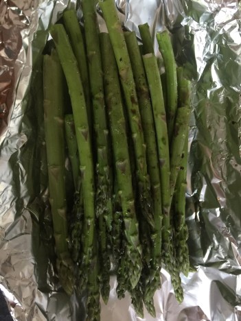 Drizzle with some olive oil, balsamic vinegar, and sprinkle salt and pepper. Close up the aluminum to make a bundle ready for the BBQ. If you are cooking the salmon in the oven, place the asparagus in a cookie sheet and drizzle the same way. They will go in the oven for 10 minutes.
