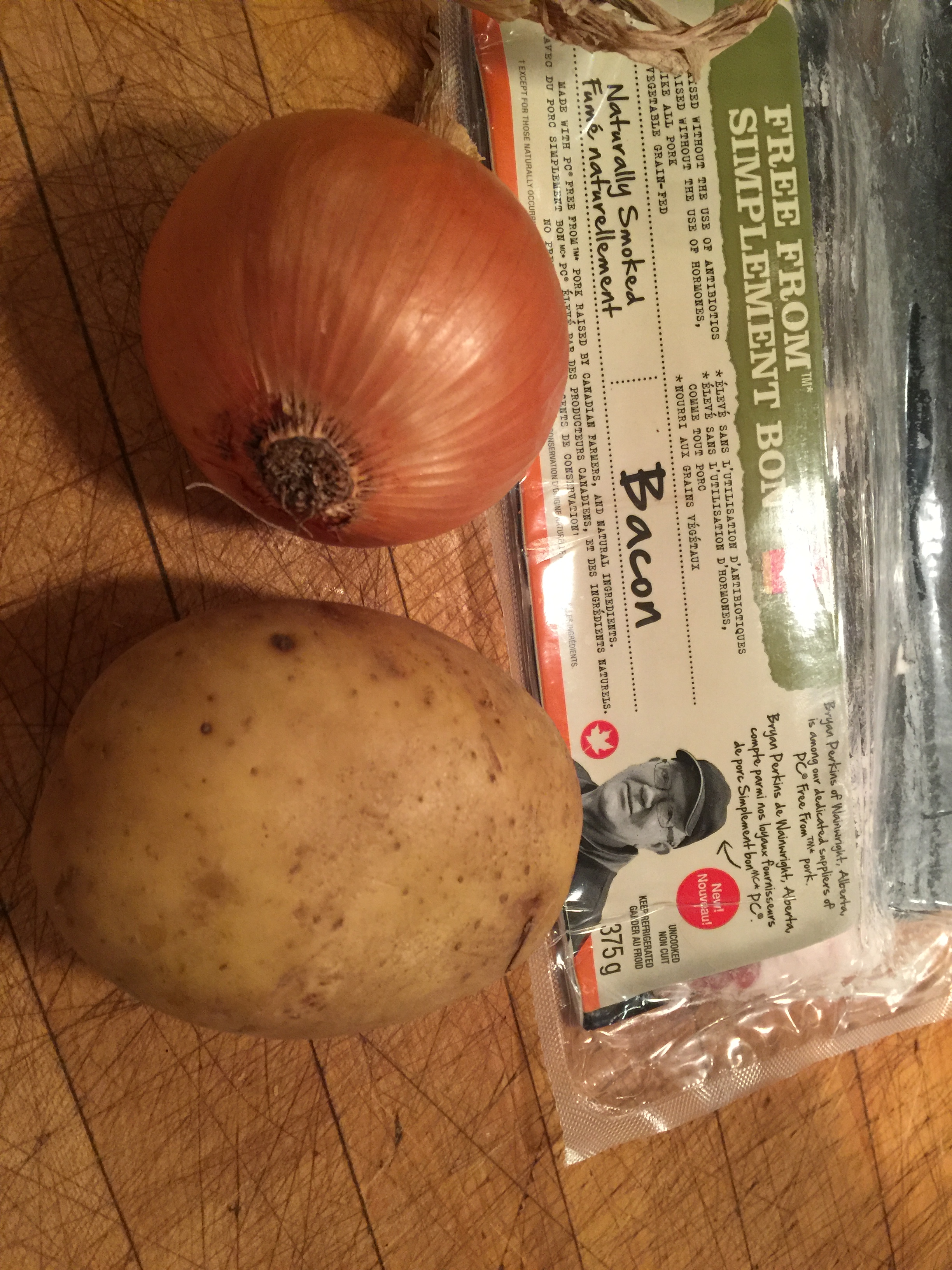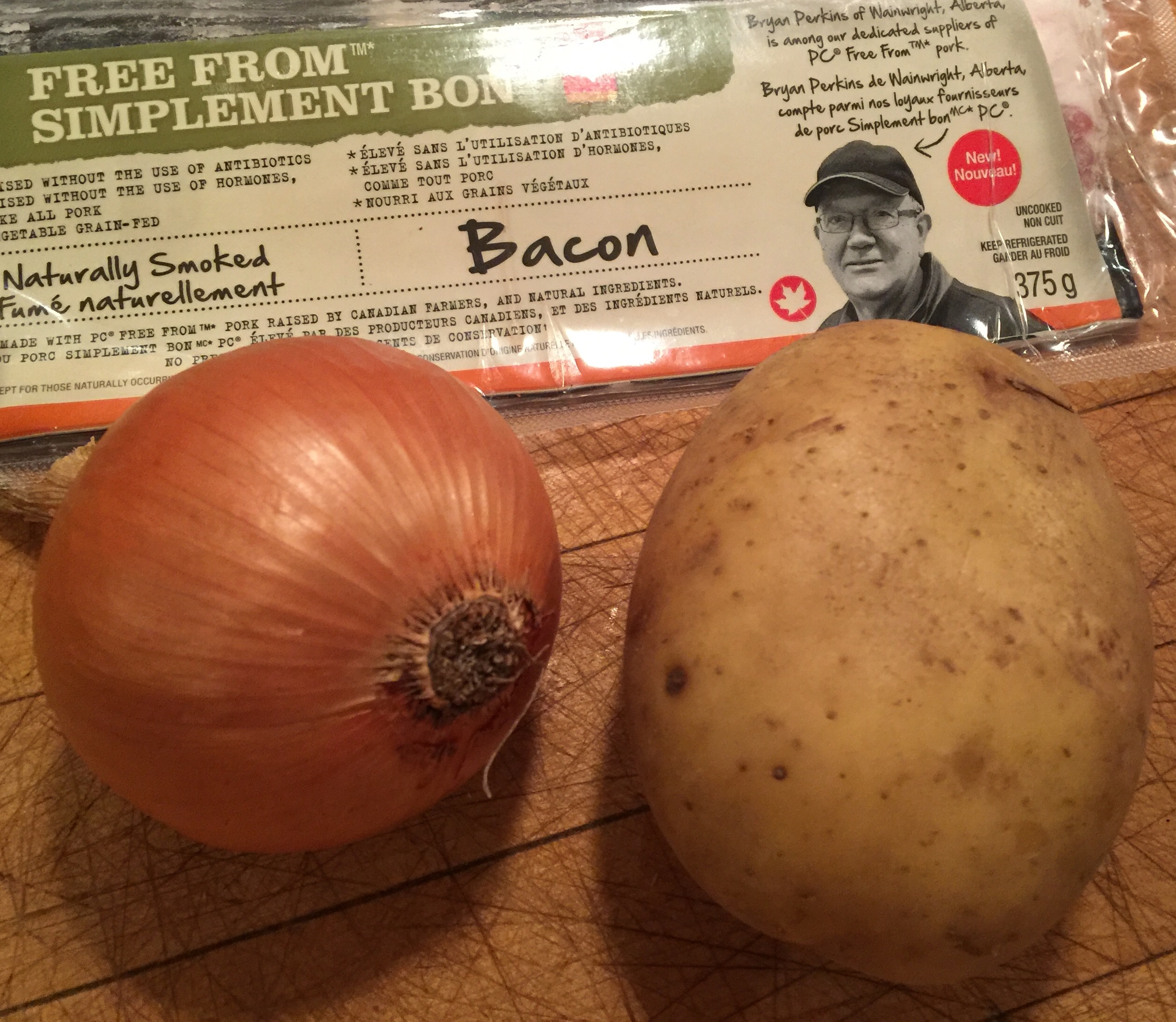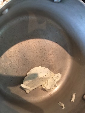 Add the butter and then toss in the onion, the potato, the herbs and salt and pepper to taste. Sauté over medium heat for a few minutes.