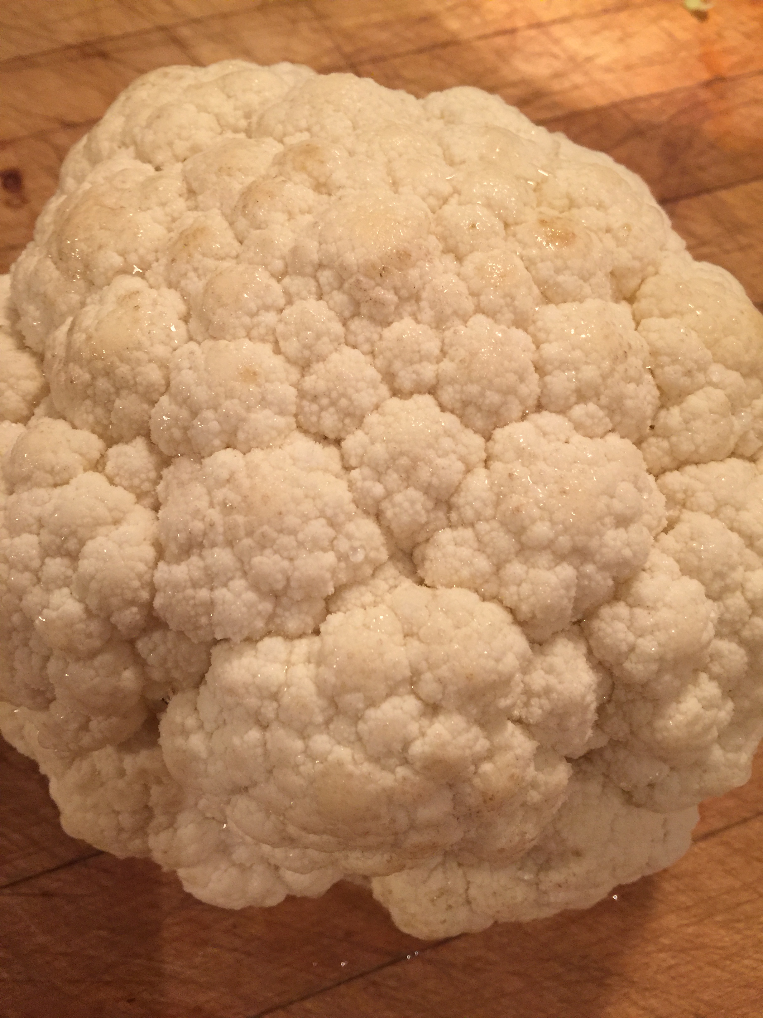 Toss the cauliflower florets with oil as well as salt and pepper to taste and spread on a cookie sheet to roast in the oven at 425F for 10-15 minutes.