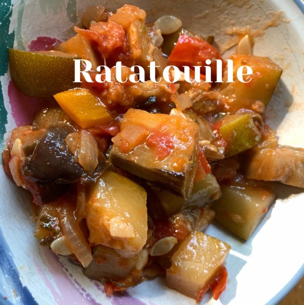 One of my favorite recipe when the huge zucchini start showing up in our garden. A hearty meal in itself that can also be served on pasta with cheese on top for a ratatouille au gratin!