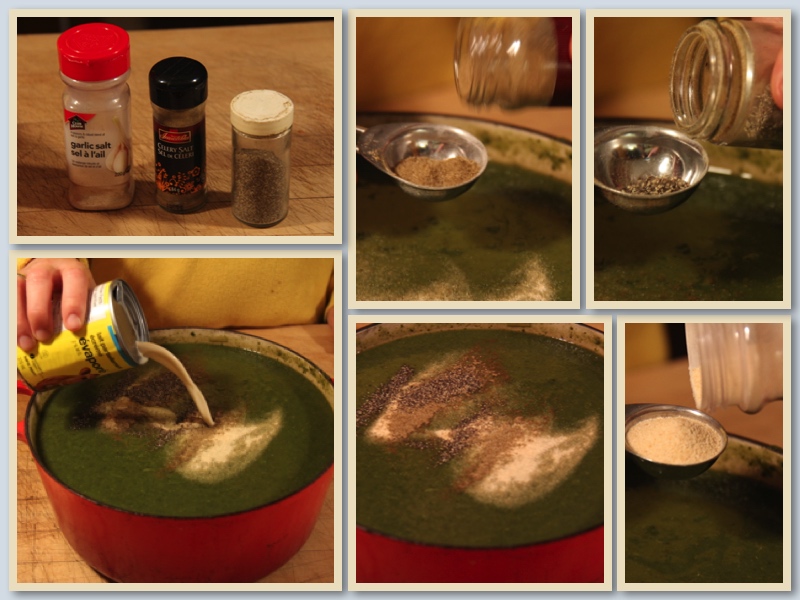 This is a recipe that is based on the teaching of my aunt Raymonde. When I first moved into our house, she and my parents drove down from Montreal for weekend visits. We would go to the farmer’s market, which was quite fun with aunt Raymonde and my mom, and always came back with some sort of leafy greens (Swiss chard was her favourite). She taught us how to make a cream of vegetable with pretty much any leafy greens, although she often would only use Swiss chard leaves. My baby food purees for my boys when they were little were largely based on this recipe adapted with less spices. I have modified it over the years to what has become known in our house as the “green soup”. You can substitute pretty much any green vegetable in this recipe. Really whatever you have on hand including broccoli and their stems, asparagus etc…This is really a base for any cream of vegetable.