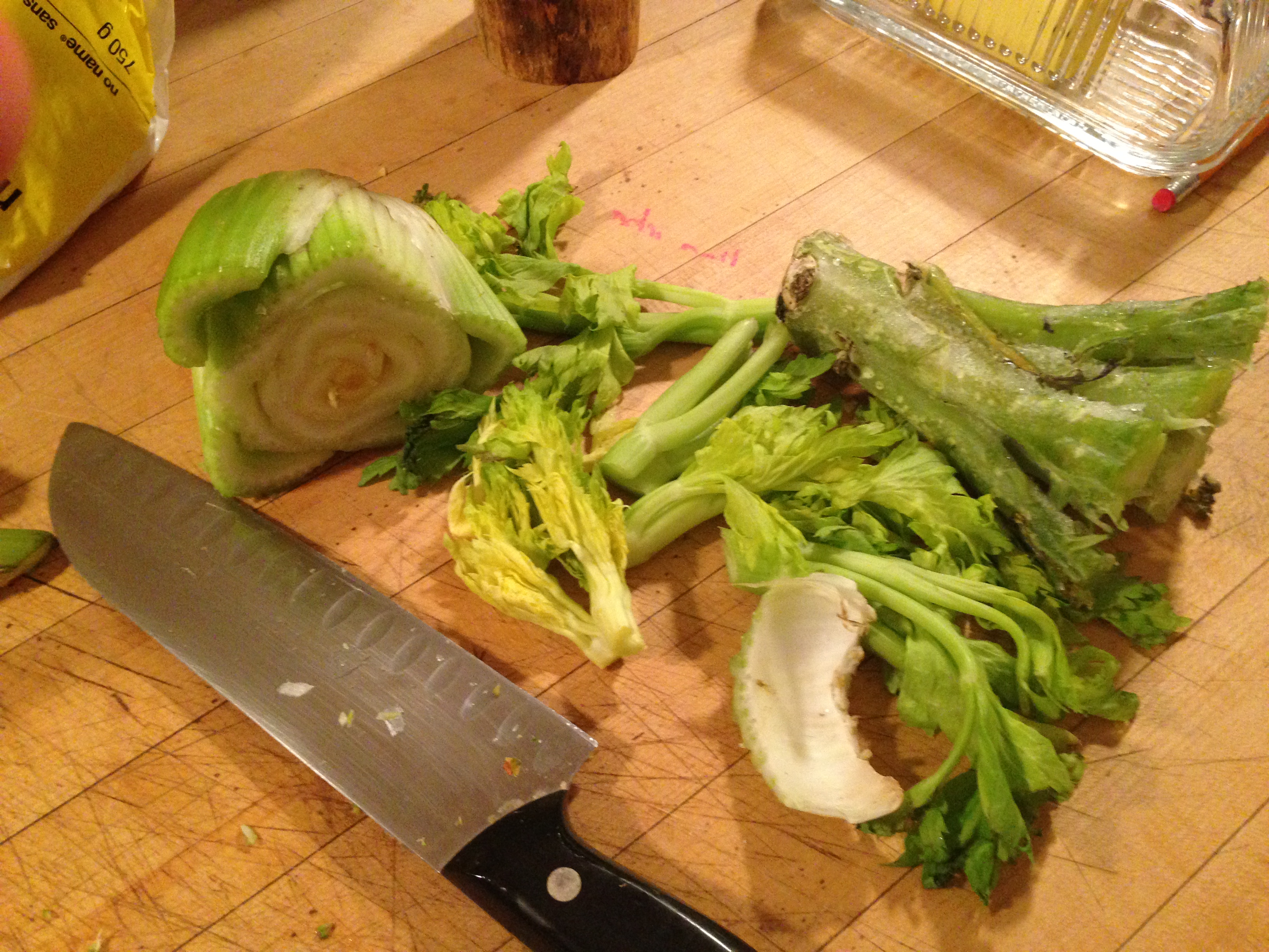 Note: when I fix up a celery or use florets from a broccoli, I freeze the ends and stems in a plastic bag for future use in a broth. You can make your own veggie or chicken broth at no cost!